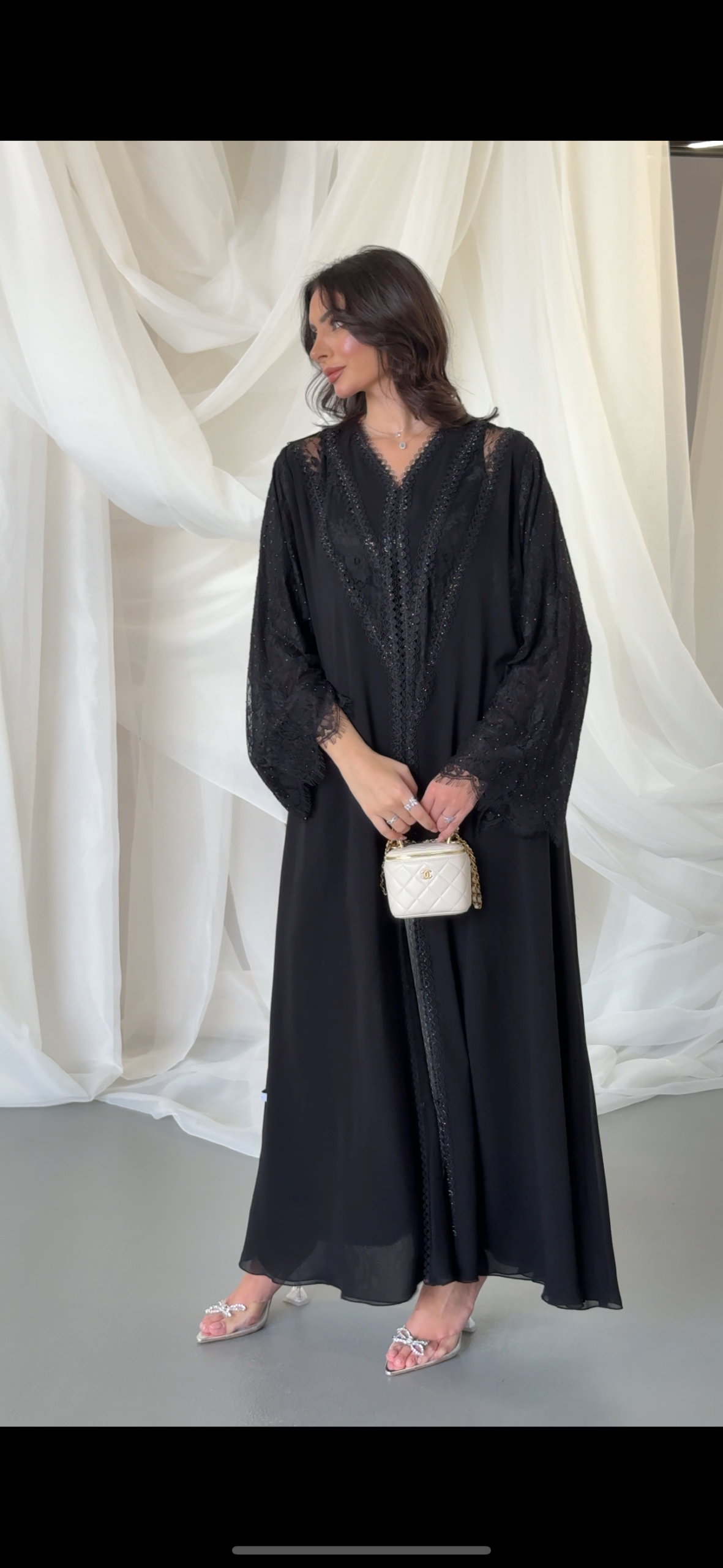 Fabric : nada / القماش : ندى خطين الدانتيل قدام شفاف
